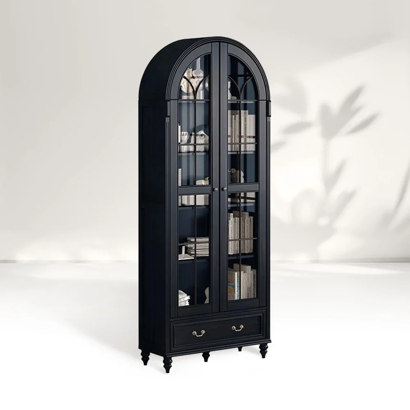 La bibliothèque à porte en verre en forme d'arc est conçue pour s'adapter à divers espaces, ce qui en fait un choix polyvalent: