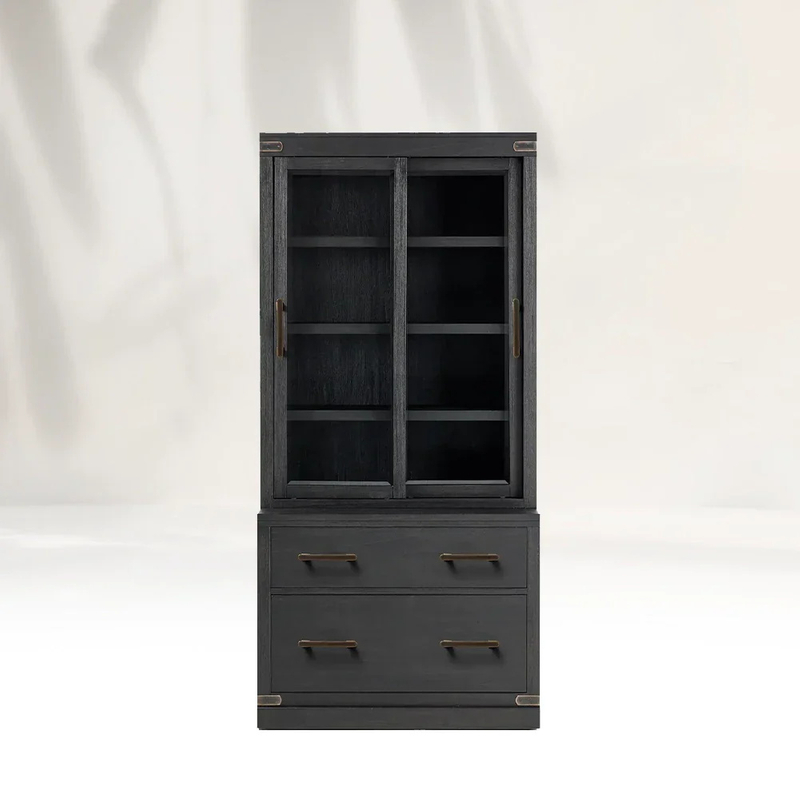 Cette armoire combine l'affichage et le stockage. La section de verre supérieur - Fonded est idéale pour présenter des articles comme des livres, des décorations ou une vaisselle tout en gardant la poussière. Les tiroirs inférieurs offrent un stockage caché pour de petits articles, des documents ou des effets personnels pour garder votre espace bien rangé.