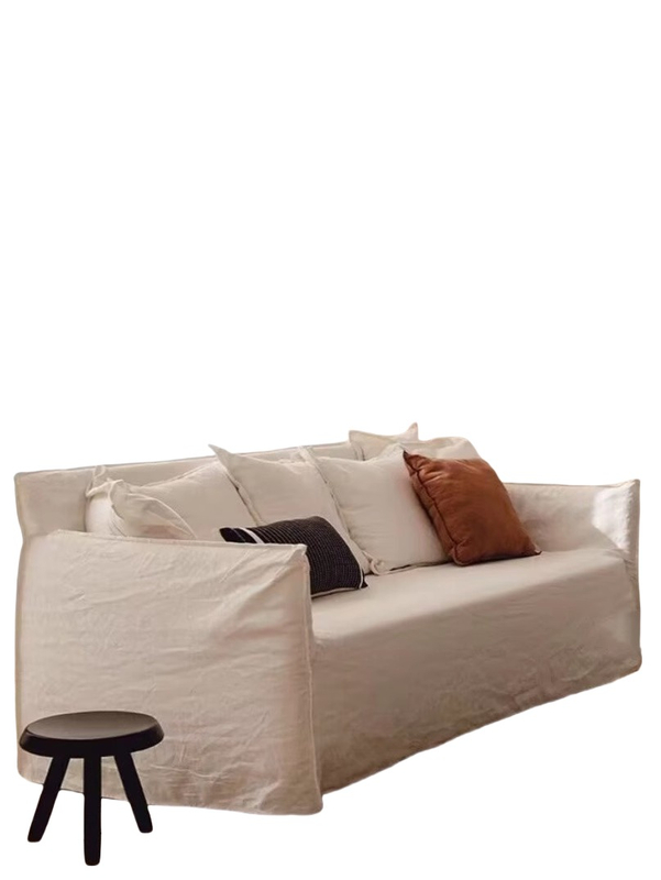 Il s'agit d'un canapé à deux couleurs léger avec un style simple et confortable. Il adopte une conception de glissière lâche et est faite de tissu blanc, qui a un fort drapé naturel et montre pleinement un sentiment de désinvolture. Le canapé est assorti de plusieurs oreillers à lancer dans des couleurs telles que le blanc, le noir et le marron, enrichissant la hiérarchie visuelle.