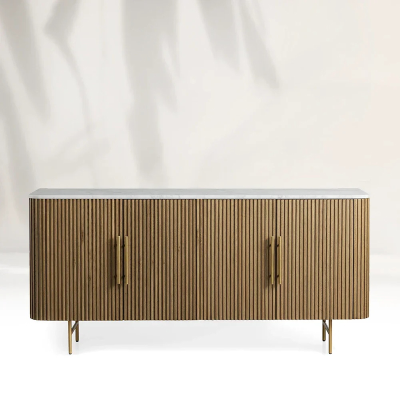 Cette armoire TV en chêne blanc propose un haut fabriqué à partir de luxueux marbre naturel. Le marbre, avec ses modèles de veine uniques qui ressemblent à de délicats ruisseaux serpentant à travers un paysage, ajoute un air d'élégance et de sophistication. Chaque dalle est une - de - un - genre, garantissant que votre armoire à télévision est vraiment distinctive. La touche fraîche et lisse du marbre contraste magnifiquement avec la texture chaude et granuleuse de la base de chênes blancs, créant un mélange harmonieux de matériaux. Le top en marbre naturel sert non seulement de point focal étonnant, mais offre également une excellente résistance à la chaleur, ce qui le rend parfait pour placer des appareils multimédias. C'est une combinaison qui épouse les fonctionnalités avec une esthétique élevée, améliorant le charme général de votre salon.