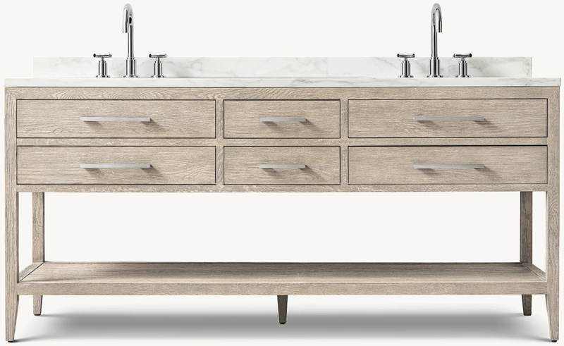 Des matériaux épais en marbre solide, en travertin ou en quartz et des plaques anti-éclaboussures assorties sont fournies. Le comptoir en marbre est poli à la main et scellé deux fois pour prolonger sa durée de vie. Le comptoir en travertin, après avoir été poli et scellé, présente une finition en satin, mettant en évidence son charme naturel. Les comptoirs en quartz de pierre de César et de viatra sont caractérisés par une ténacité élevée, pas de trous, une résistance aux rayures et une résistance aux taches.