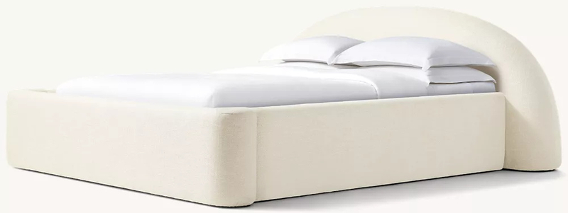 Tête courbe: conçue avec un arc semi-circulaire. Le rayon de courbe est considéré à la fois à partir des aspects ergonomiques et esthétiques, se connectant naturellement au cadre du lit. Il casse l'impression rigide et ajoute un rythme flexible, comme une 'couronne douce '.