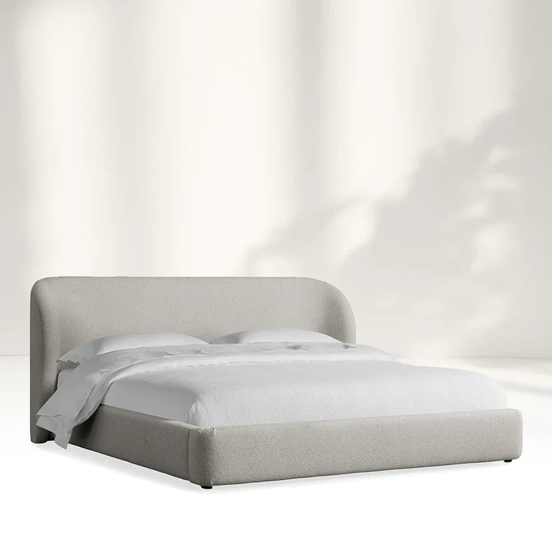 Ce lit est un chef-d'œuvre du design contemporain, mélangeant parfaitement la simplicité avec la sophistication. La tête de lit, rembourrée dans un tissu gris léger en peluche, présente une courbe fluide douce qui ajoute non seulement une touche d'élégance mais offre également un support ergonomique, ce qui le rend parfait pour se pencher en arrière et lire ou regarder la télévision. La texture douce du tissu se sent non seulement luxueuse au toucher, mais complète également la palette de couleurs neutres globale, créant un sentiment de tranquillité.