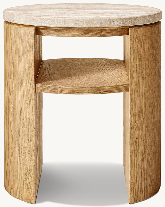 Contraste tactile: la dureté fraîche du travertin contraste avec la douceur chaude du chêne, offrant des expériences tactiles diverses à usage quotidien (par exemple, les coudes au repos, placer des objets).