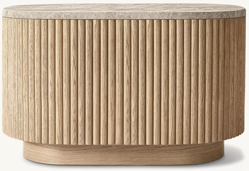 la conception verticale de la bande à la surface de l'armoire est un détail très ingénieux. Ces rayures verticales ajoutent non seulement un effet à trois dimensions à la table d'appoint, mais la dotent également avec un sens dynamique de rythme. Lorsque la lumière brille sur la table d'appoint, les rayures verticales créeront un effet léger - et - de la luminosité et de l'obscurité alternés, ce qui rend la table d'appoint plus vive et intéressante. De plus, la direction de la disposition des rayures verticales fait écho au contour ovale de la table d'appoint, améliorant davantage la beauté harmonieuse globale.
