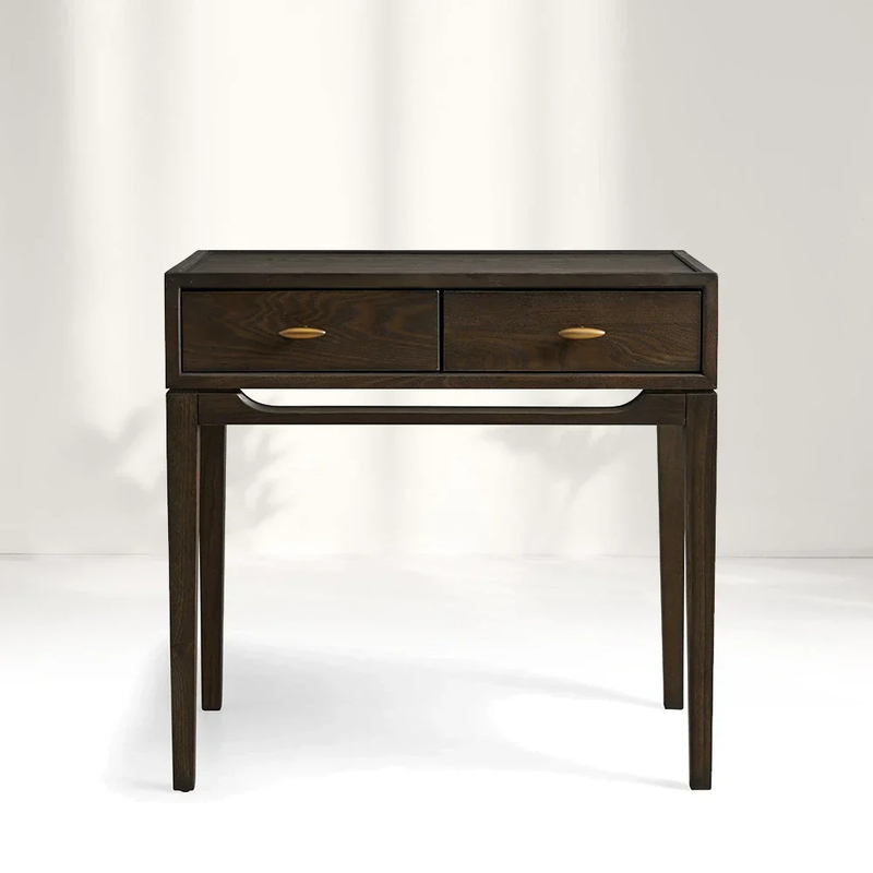 ● Le matériel en laiton dispose d'une finition brossée pour compléter les tons sombres du bois.
